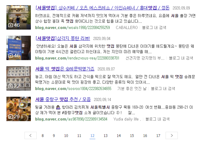 서울 맛집을 검색하니 이렇게나 많은 글들이 나옵니다.