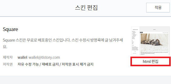 6. 스킨 편집 창에서 우측 html 편집을 클릭해줍니다.