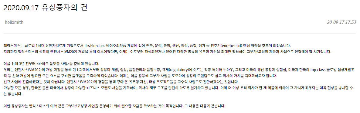 사실 헬릭스미스는 지난해 유상증자를 통해 자금을 조달하며
