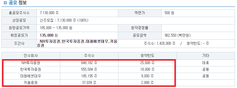 NH투자증권, 한국투자증권, 미래에셋 대우, 키움증권에서 청약을 신청할 수 있으며